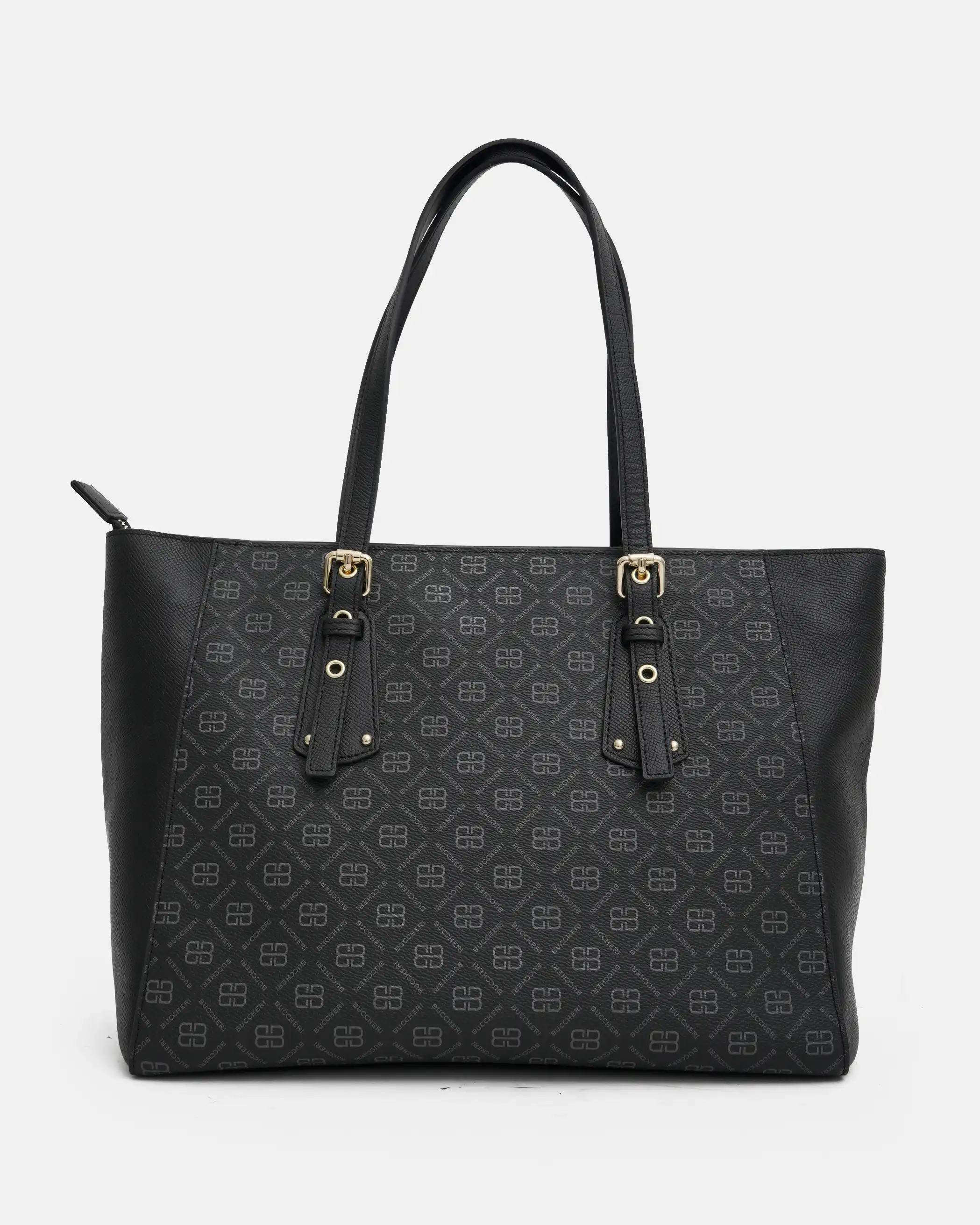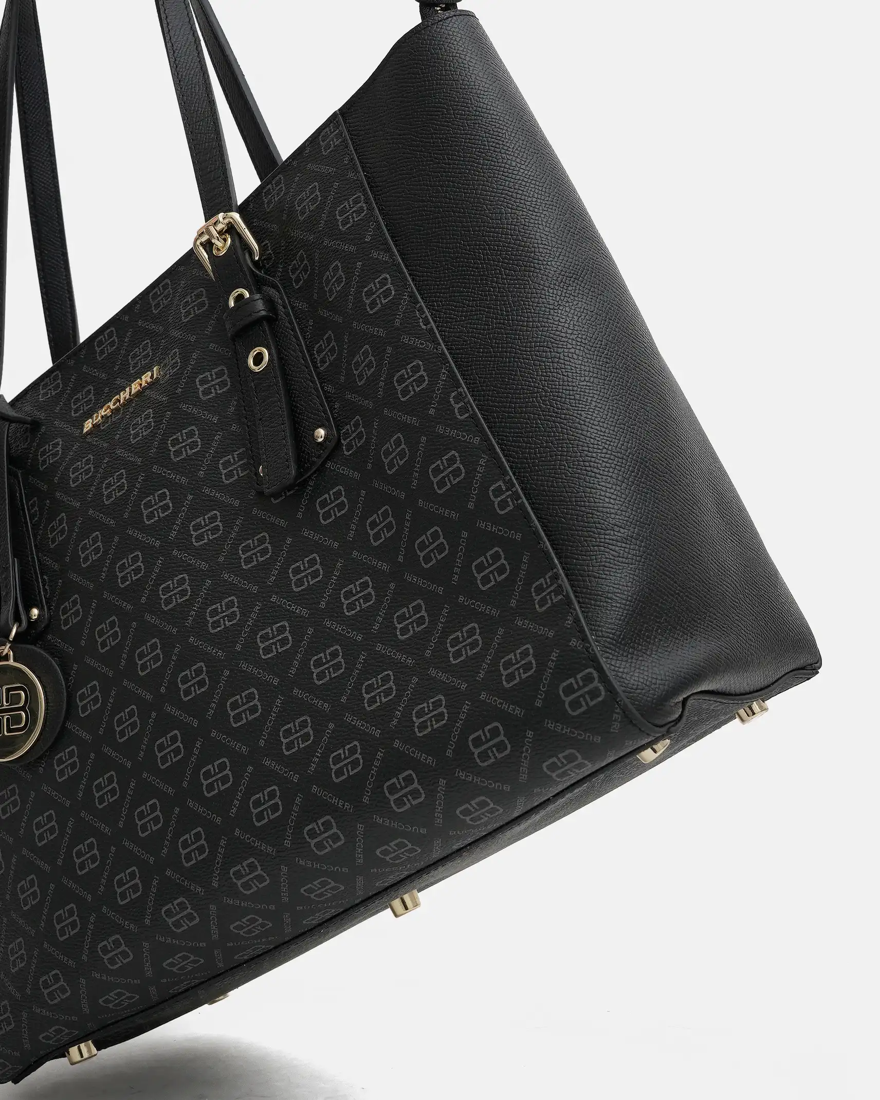 Vittoria bag in monogram coated canvas with leather inserts, branded metal pendant, designed timeless for a classy look.